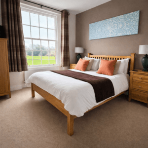 The Cambridge Suite – Overlooking the village green this suite offers a large lounge, television, wi-fi and self catering kitchen area, a double bedroom and a bathroom with both a bath and shower.
